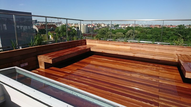 Von Tropenhölzern über heimische dauerhafte Hölzer bis hin zu WPC (Holz-Kunststoff-Verbundwerkstoff) bieten sich diverse Möglichkeiten als Belag an. Die Unterkonstruktion wird zumeist über Alu- oder Holzlager auf justierbaren Stelzfüßen realisiert.